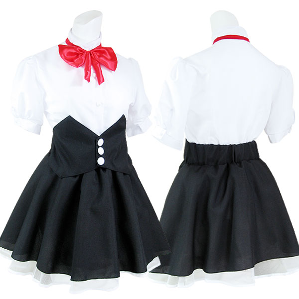 コルセット調のふんわりスカートが特徴的!赤いリボンが可愛いウェイトレス風の制服コスチューム。