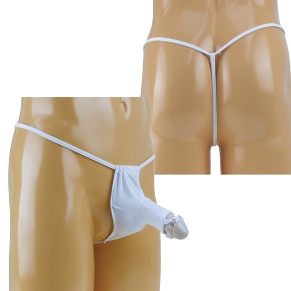 ●すっきりとしたホワイトカラー●幅を自由に調節できるふんどし風●体にフィットするストレッチ生地●筒状のエレファント型ポケット●先端に透明のパワーリング付き●Tバックのストリング仕上げ●メンズ用Mサイズ・日本製。