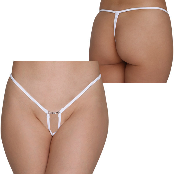 ●ホワイトカラーのストレッチ生地●ほぼ紐オンリーの大胆オープン仕様●ワンポイントのフロントアクセ付き●ミニマム過ぎる極小クロッチ●クロッチ部分にローターポケット●後ろはセクシーなTバックタイプ。