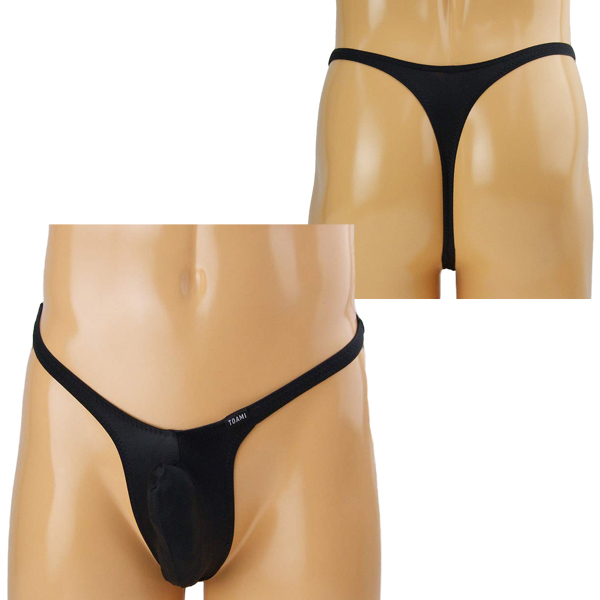 男のシンボルを逞しくセクシーに魅せる上向き縫製の日本製メンズ用Tバック(黒)。