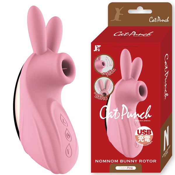 クリトリスに吸い付いてチュパチュパ振動する「吸引バイブ」が究極進化!吸引穴にソフトシリコンのやわらかい「舌」を設置することで、ちゅっちゅと吸いながらの快感やクリトリスを「舌」がツンツンする振動刺激、舐め転がしての愛撫など敏感なトコロを存分に刺激してくれます♪「ウサ耳」には2個の強力振動モーターを内蔵!吸引だけじゃ物足りないという人にぴったりの2wayタイプのローターです。