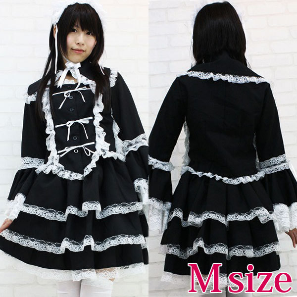 | サイズ/ 仕 様 | Mサイズ:B76〜82cm・W64〜100ccm 丈:上着48cm(袖62cm・肩幅37cm)・スカート47cm セット内容:ジャケット(前ボタン留め、姫袖)・別衿・ヘッドドレス(総レース仕様、バラのコサージュ付き)・スカート(ウェストゴム入り) | ||