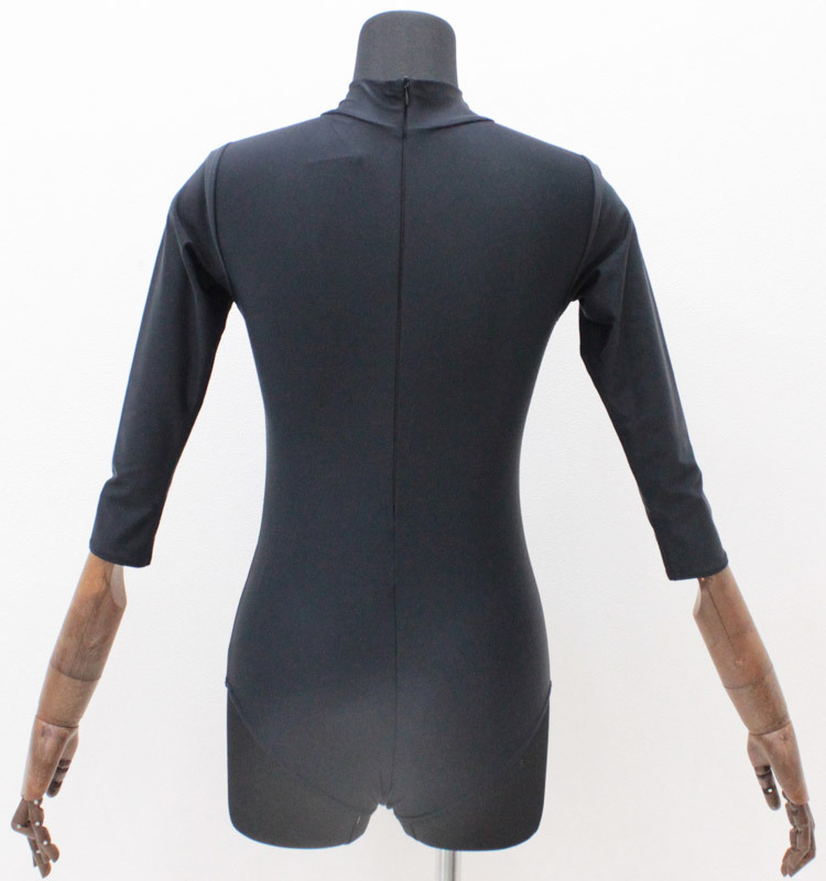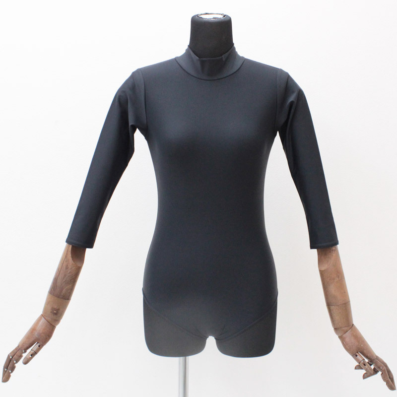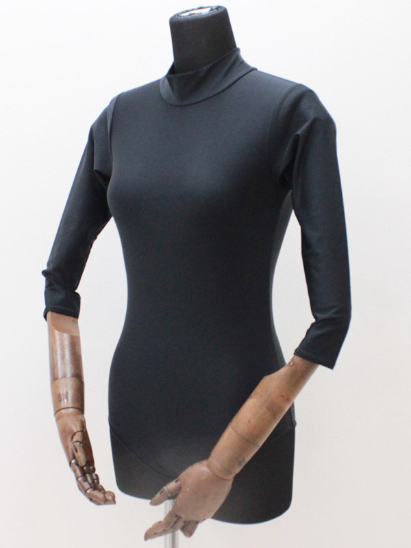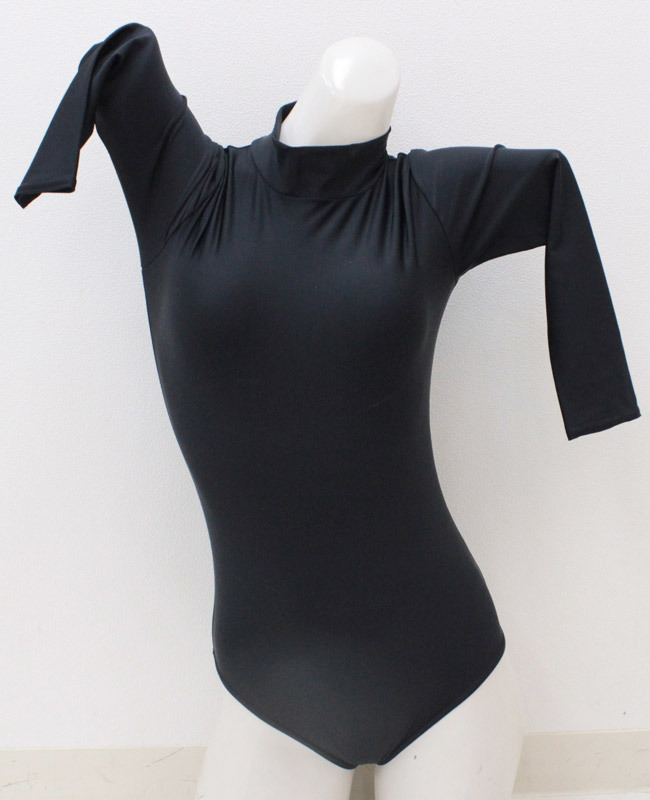 ブラックカラーのスタンダードな七部袖丈ハイネックレオタード単品(BIG)。