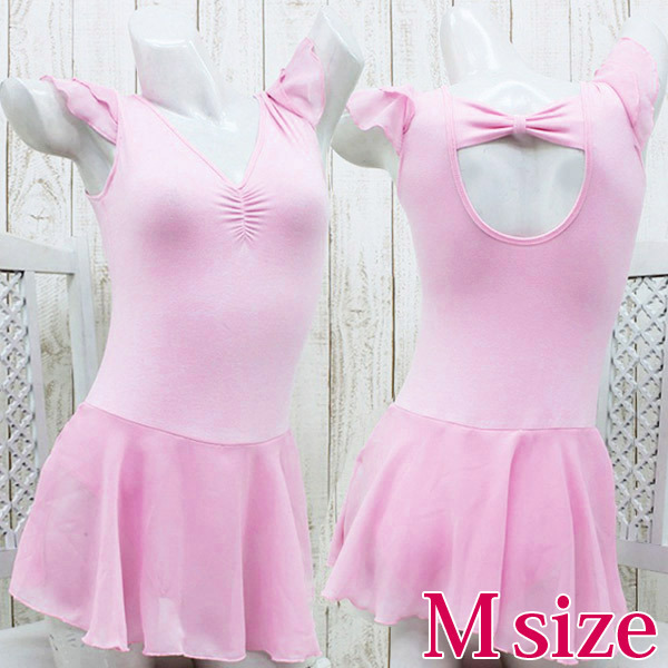 ●女の子らしいピンクカラー●フリリーなフレンチスリーブ●フロントはすっきりとしたV字カット●バックリボンで後ろ姿にもアクセント●ひらりと軽やかなスカート付き●一部当て布付きで安心。