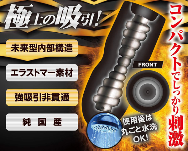強吸引の刺激がマッハで射精を促す!螺旋構造によるヒダが生み出す極上の吸引で亀頭にしっかり絡みつき搾り取る。