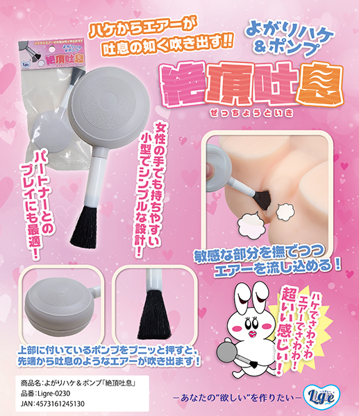 古来からある「よがりハケ」、これに風を出すポンプ機能を追加!まるで吐息のようなエアーがハケの部分、先端から吹き出ます♪女性の手でも持ちやすい小型でシンプルな設計。
