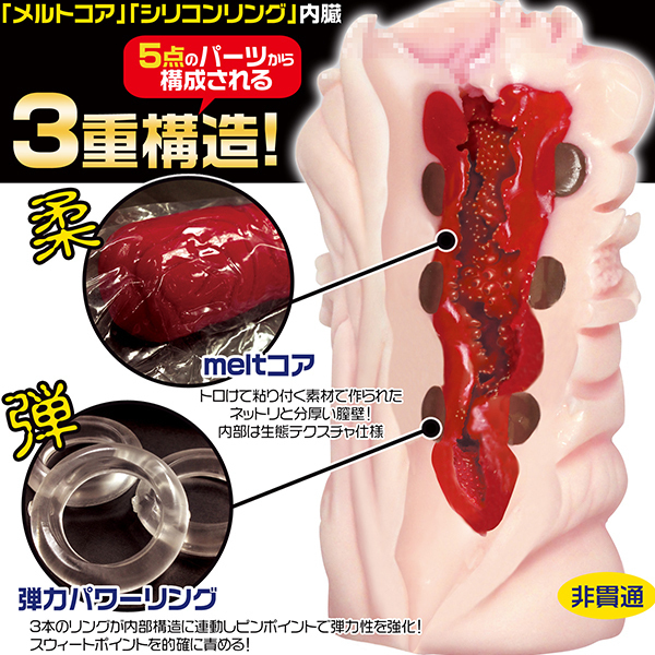 肉厚の外壁&トロトロ膣内素材の間に、3つのリングを内蔵した新発想のオナホール。