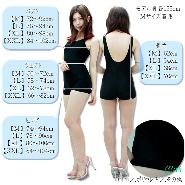 サイズ/ 仕 様 | XLサイズ:B80〜98cm・W62〜78cm・H80〜100cm 着丈66cm セット内容:水着単品(前身頃全面に裏地付き、胸部にパット付き) 素材:ナイロン、ポリウレタン、その他 |