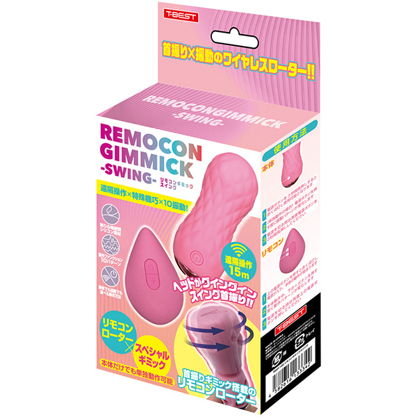 ただ震えるだけじゃない!特殊な機巧アクションが遠隔操作で楽しめる、新しいワイヤレスローター「リモコンギミック」!ブロッサムピンクカラーの「スイング」モデルは、首振りするスイングギミックを搭載!小さなボディながらも、まるで電動バイブのような、ヘッドがグイングインと首振りスイングします。