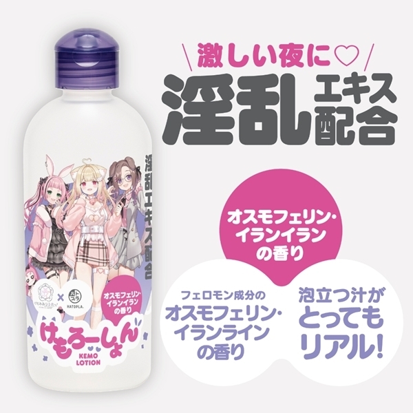 バーチャルリラクゼーションサロン「けもみみりふれっ!」とのコラボで生まれた特別なローションです♪香りはオスモフェリンとイランイランをブレンドし、心を落ち着ける癒しの時間を演出します!泡立つ仕様で、使用中の楽しさもプラス♪粘度や使用感にもこだわり、肌なじみの良い仕上がりです!ワンタッチキャップ採用で、片手でもスムーズに使えます♪プレイ中の継ぎ足しにも便利な設計です!肌に触れるものだからこそ、安心の国産素材と国内生産にこだわりました♪香りと使いやすさを兼ね備えた一本で、毎日のリラックスタイムをちょっと特別にしてみませんか!